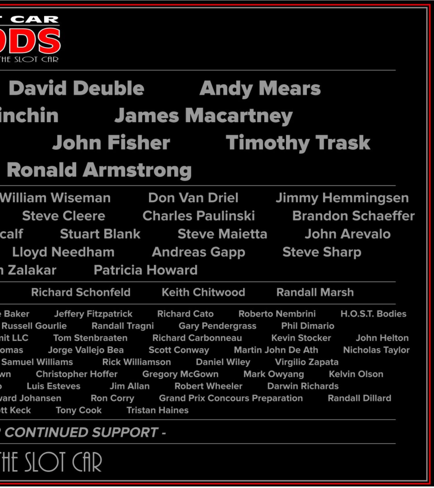A huge thank you to all those who support Slot Car Mods Magazine