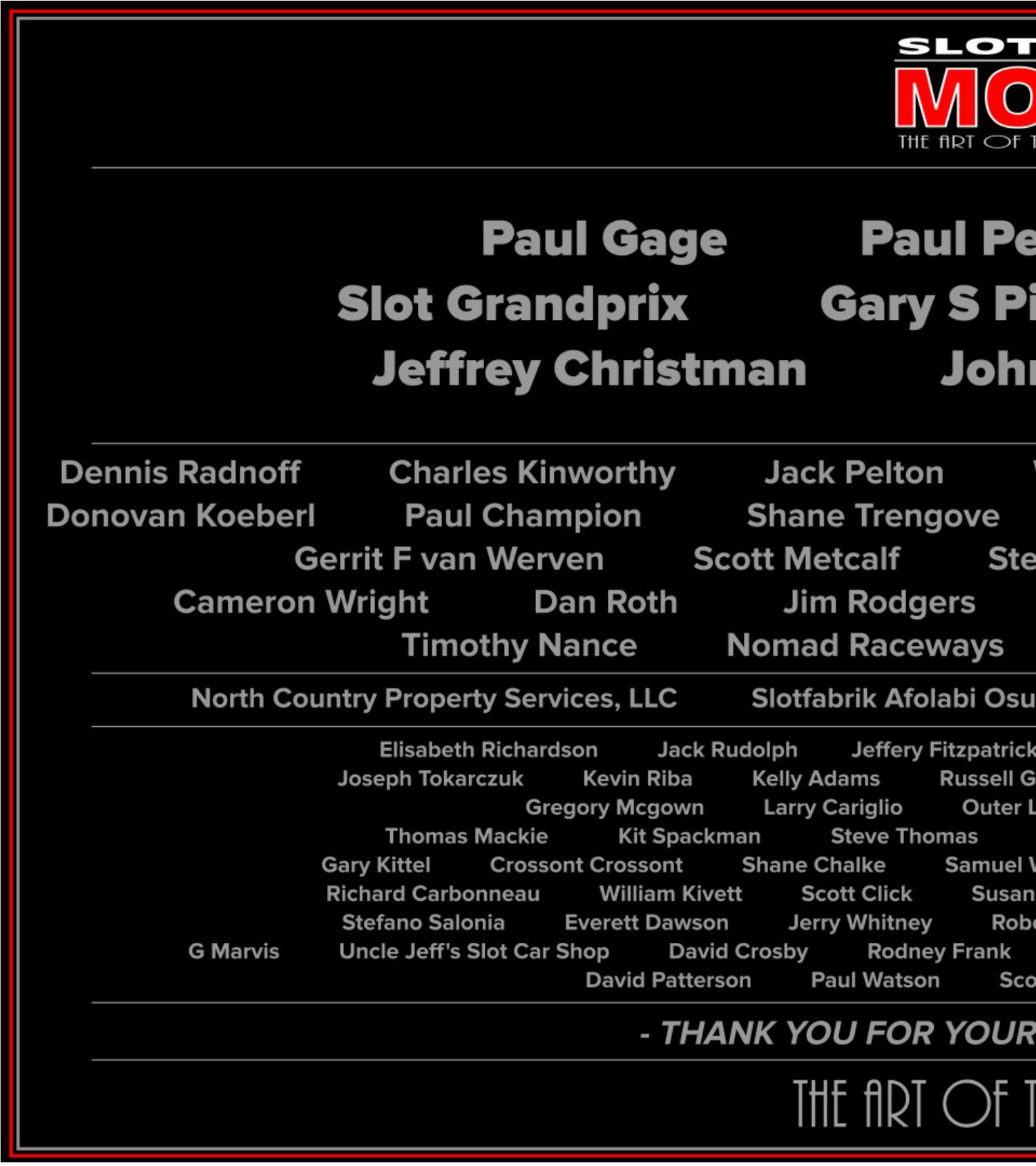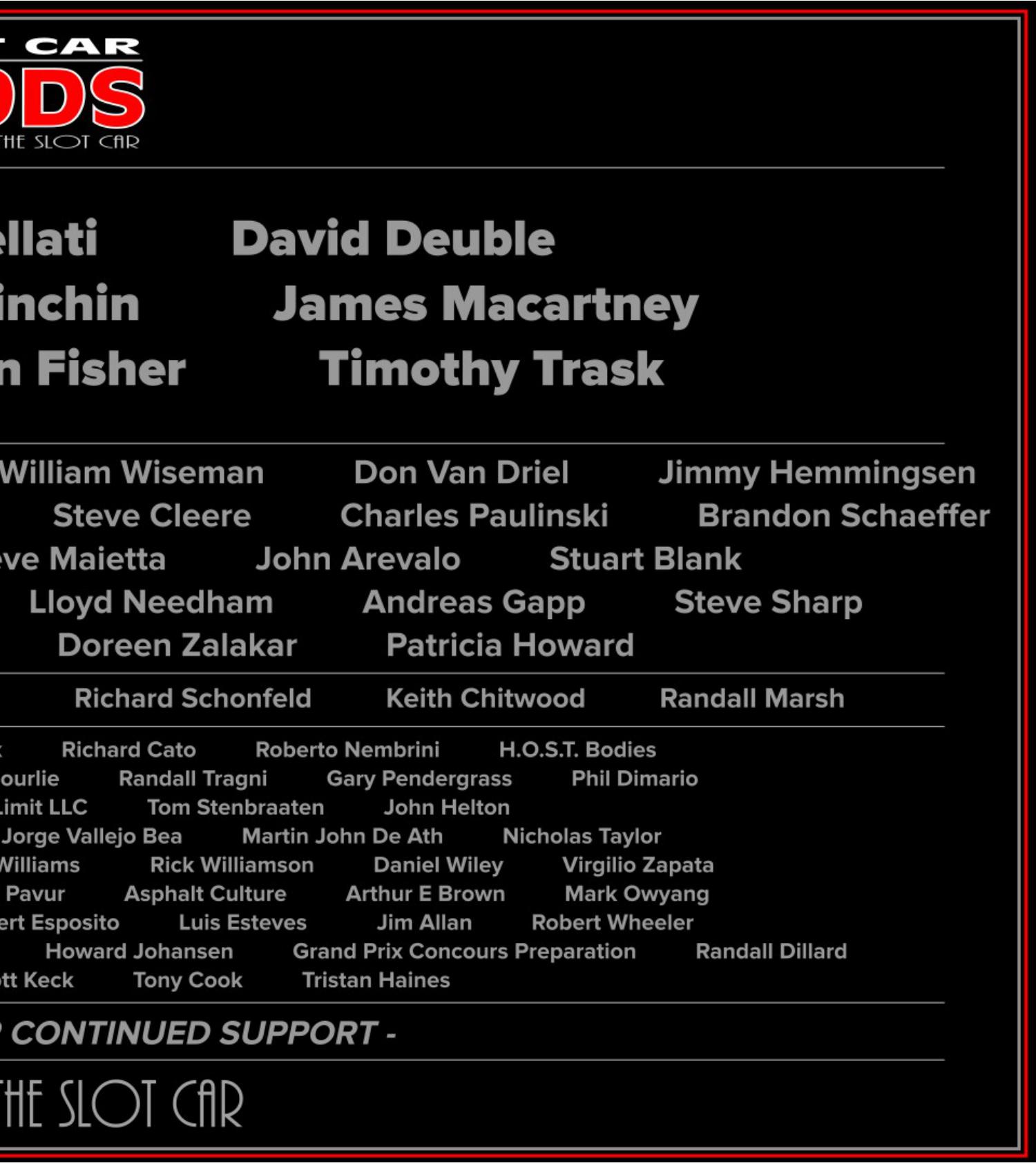 A huge thank you to all those who support Slot Car Mods Magazine